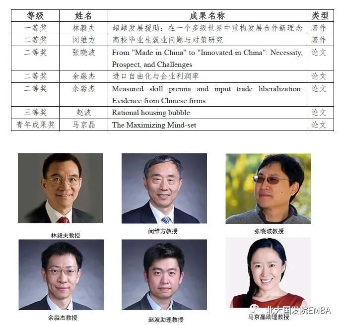 近日,教育部揭晓第八届高等学校科学研究优秀成果奖(人文社会科学)评选结果。北大国家发展研究院共有7项成果入选。具体情况如下: