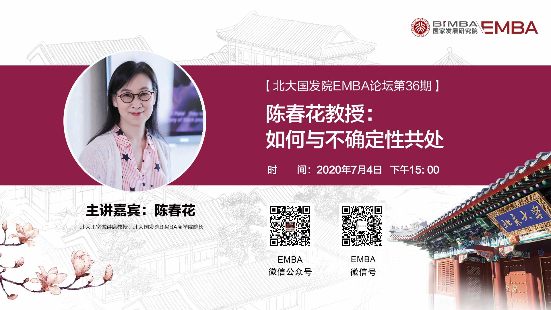7月4日,北大国发院EMBA论坛第36期,将由陈春花教授带领我们一起探寻与不确定性的共生之道。